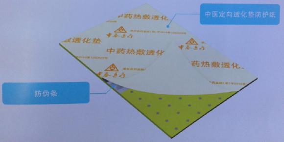 說明:使用時,揭開防護紙,將中醫定向透化墊帶有防偽條的一面,粘貼于透化系統的透化頭上,將另外一面粘貼于病灶部位即可。