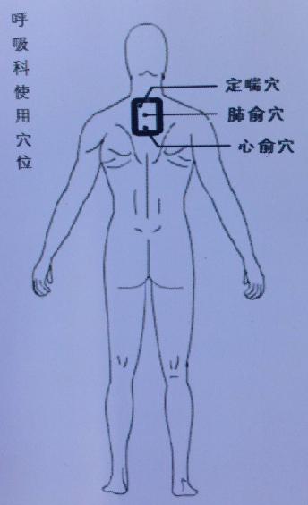 適應癥主要有:支氣管哮喘,慢性支氣管炎,肺氣腫,肺心病,慢性咳嗽。通過藥物對穴位刺激,可以有效的治療咳喘癥氣管、支氣管炎、肺炎等;能夠暢肺氣、除痰濁、改善癥狀,且無任何毒副作用。治療部位:背部肺腧穴配合膻中穴(遵醫囑)每天一到兩次,每次25分鐘,嚴重的同時做肺腧、膻中穴。7天一療程。(兒科、呼吸科配合溫肺止咳平喘類)