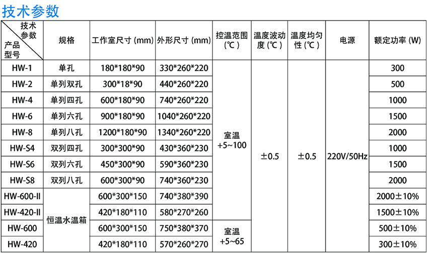 二孔恒溫水浴鍋7大主要特點: 二孔恒溫水浴鍋主要技術參數: