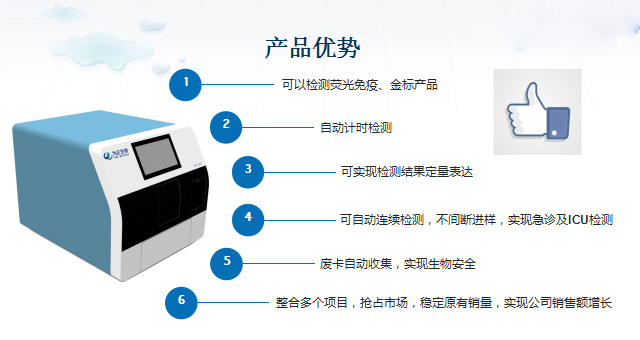 2.采用全封閉操作系統(tǒng),自動完成吸樣、加樣、洗滌、反應和檢測過程。檢測過程中操作人員不接觸試劑、標本和緩沖液等,生物安全性更高;