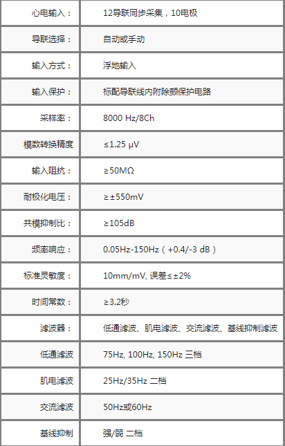 E70十二道數(shù)字式心電圖機(jī)技術(shù)參數(shù)