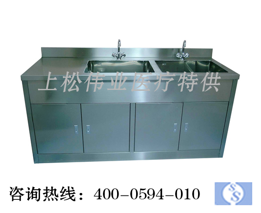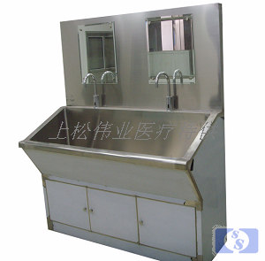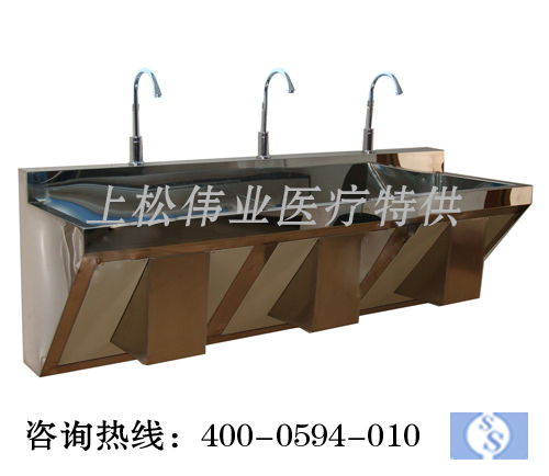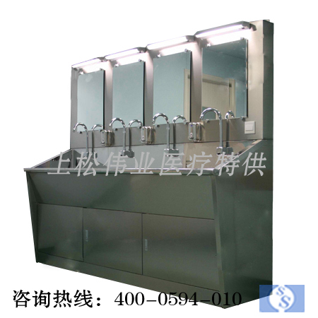 不銹鋼醫(yī)用洗手池:采用進(jìn)口優(yōu)質(zhì)304不銹鋼板制造,國際標(biāo)準(zhǔn),靜音防濺,園弧結(jié)構(gòu),恒溫出水,配備鏡燈和感應(yīng)皂液器,標(biāo)準(zhǔn)型號為1人、2人、3人洗手池,可定制非標(biāo)各類洗手池。說明:不銹鋼材厚度為1.2mm或者1.5mm,自帶50L電熱水器,可自由設(shè)定出水溫度,每個洗手位帶獨立鏡燈和鏡子,洗手槽采用特制的坡度設(shè)計,可有效防止水濺到洗手池外,各水嘴獨立設(shè)置,不影響其它水嘴的使用,方便使用及維護(hù)。