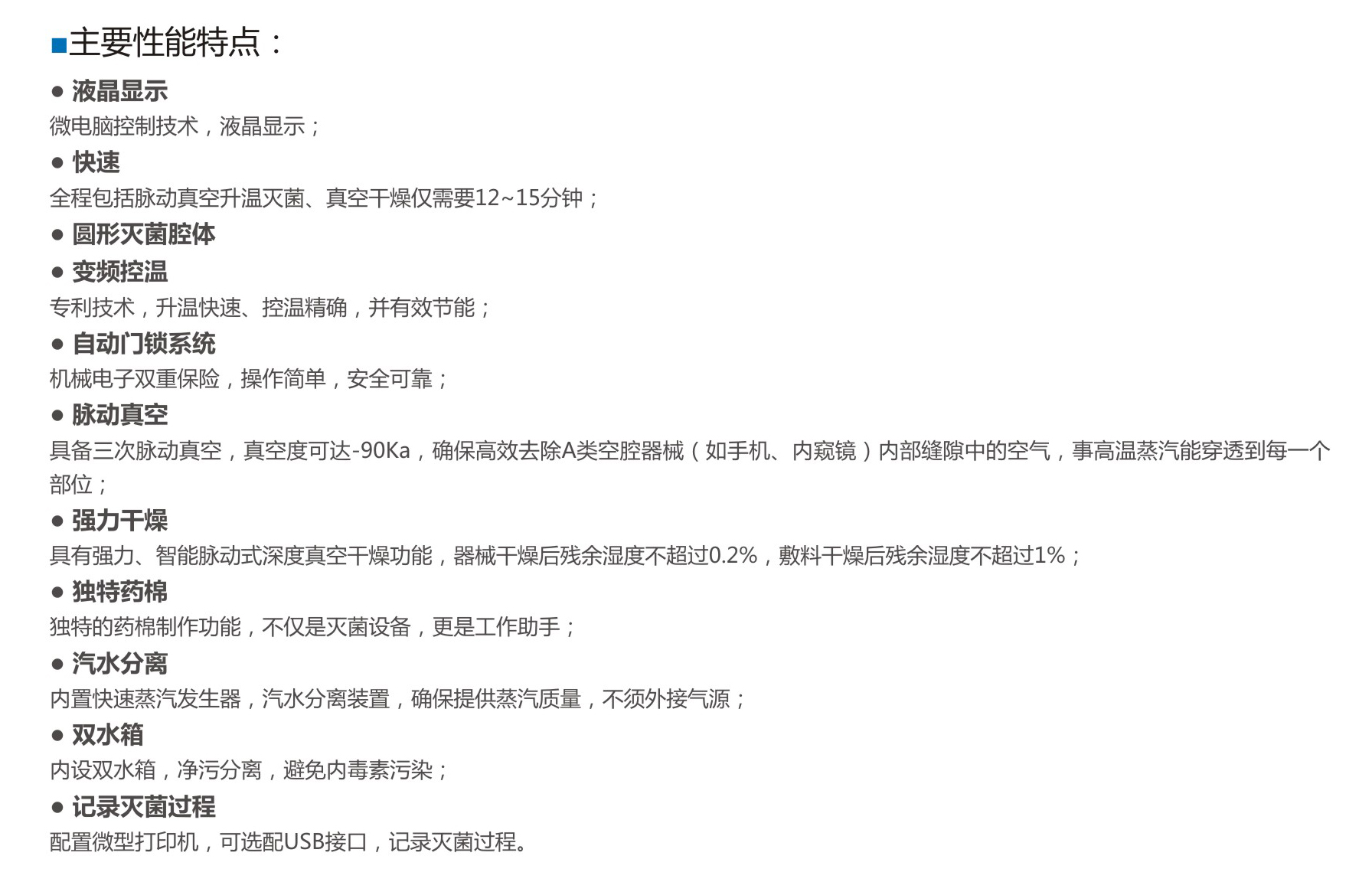 自動干燥強力真空干燥,適用不同物品干燥需求;器械剩余濕度<0.2%。