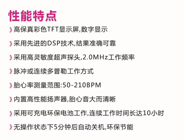 便攜式多普勒胎心音儀主要用于對(duì)孕齡在12周以后的胎兒心率的檢測(cè),