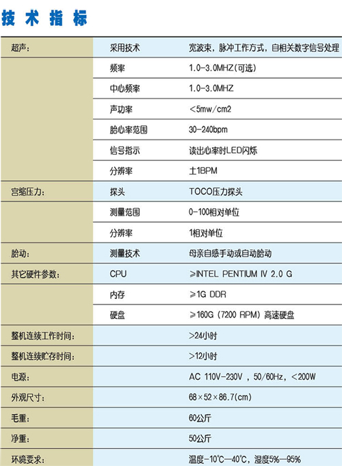 ? *超聲換能器:9晶片寬波束脈沖探頭,寬波束,脈沖工作方式,靈敏度高,采用世界領先DSP技術,胎心率捕獲范圍及能力強