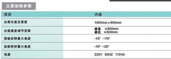 ● 腳板裝置采用可控氣彈簧來調(diào)整以達到人體各部位的合理性,有助于產(chǎn)婦的順利分娩;