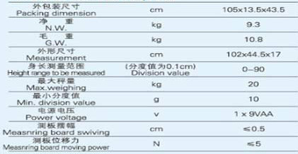 left?Wn-0Axg?.0000pt; vertical-align:; background:rgb(255,255,255); " >測高范圍:60cm-200cm 分度值:0.5cm稱重范圍:8kg-200kg 分度值:0.1kg