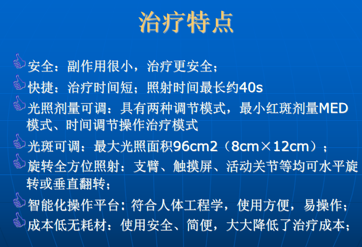 • 靶向性好,無損正常皮膚,方便到達普通光源難以治療的部位