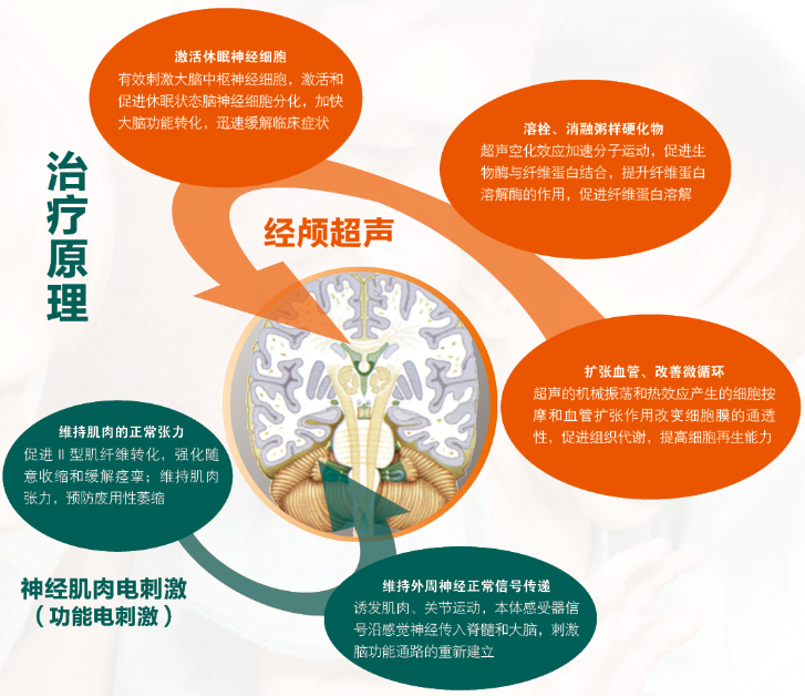 1、經顱超聲:改善腦部微循環,并激活休眠狀態腦神經細胞參與功能活動
