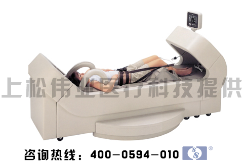 腰椎牽引,由電腦控制完成平行牽引、上下成角牽引、左右旋轉牽引三維之功能。含自動持續牽引、間歇牽引、上下階梯式牽引及反復牽引等八種牽引模式,具有牽引力自動補償功能,具有緊急復位裝置,配備腰部熱療功能。
