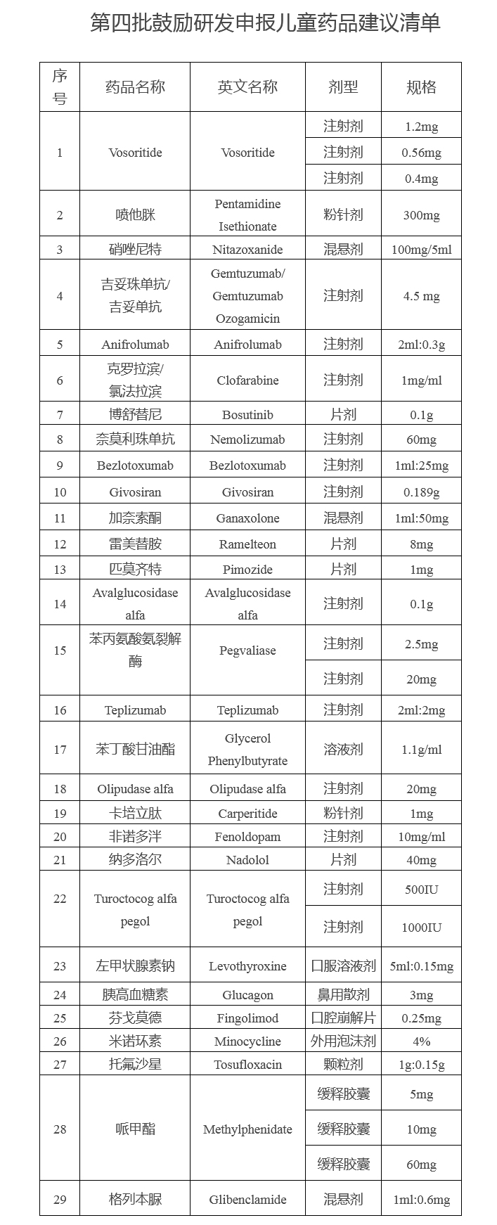 國家衛健委公示第四批鼓勵研發申報兒童藥品建議清單