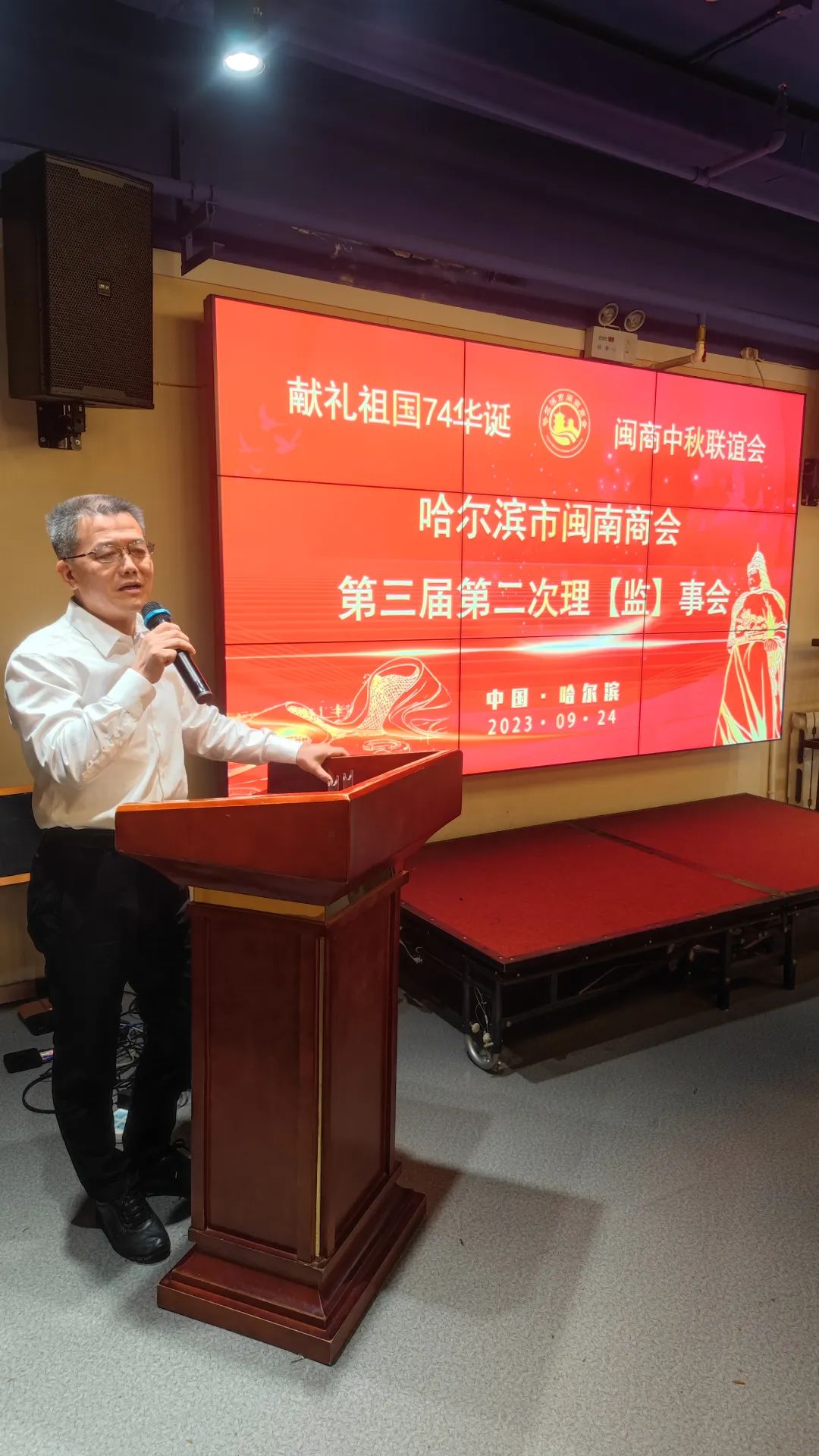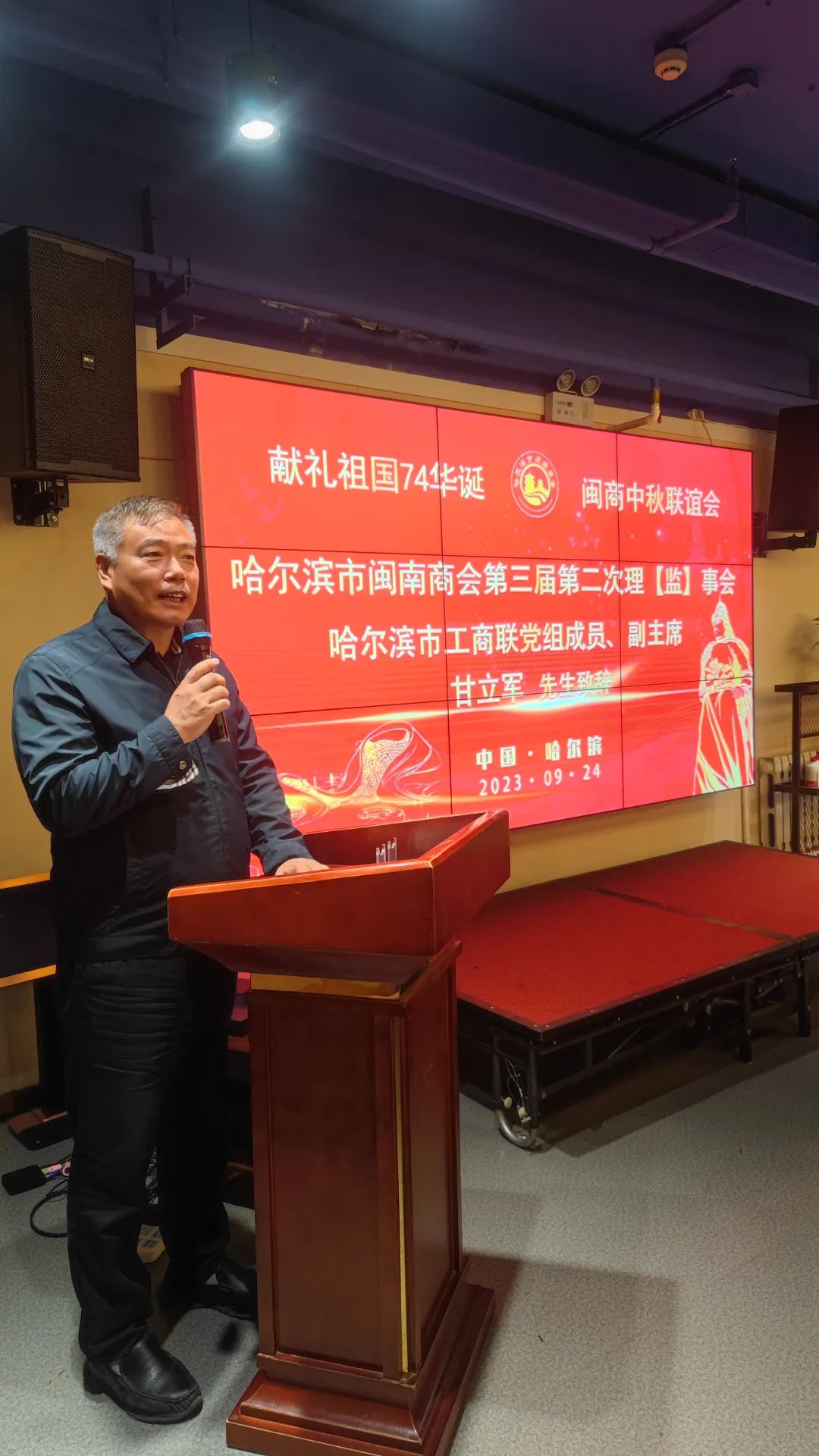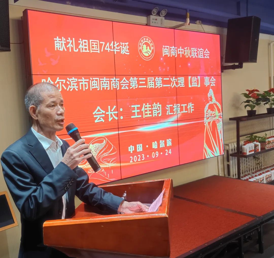 金風迎盛世,麗日展新天。9月24日下午,在中華民族傳統佳節“中秋節”和偉大的祖國即將迎來74周年華誕之際,為了抒發熱愛黨,熱愛祖國情懷,踐行愛國主義精神,唱響時代主旋律,哈爾濱市閩南商會在會員單位——鷺發海鮮酒店,舉辦第三屆第二次理(監)事會暨獻禮祖國74華誕·閩商中秋聯誼會。哈爾濱市工商聯黨組成員、副主席甘立軍,泉州市工商聯副主席杜韶山,及哈爾濱市閩南商會理(監)事會成員參加了聯誼會。聯誼會由商會黨支部書記阮啟謙同志主持。