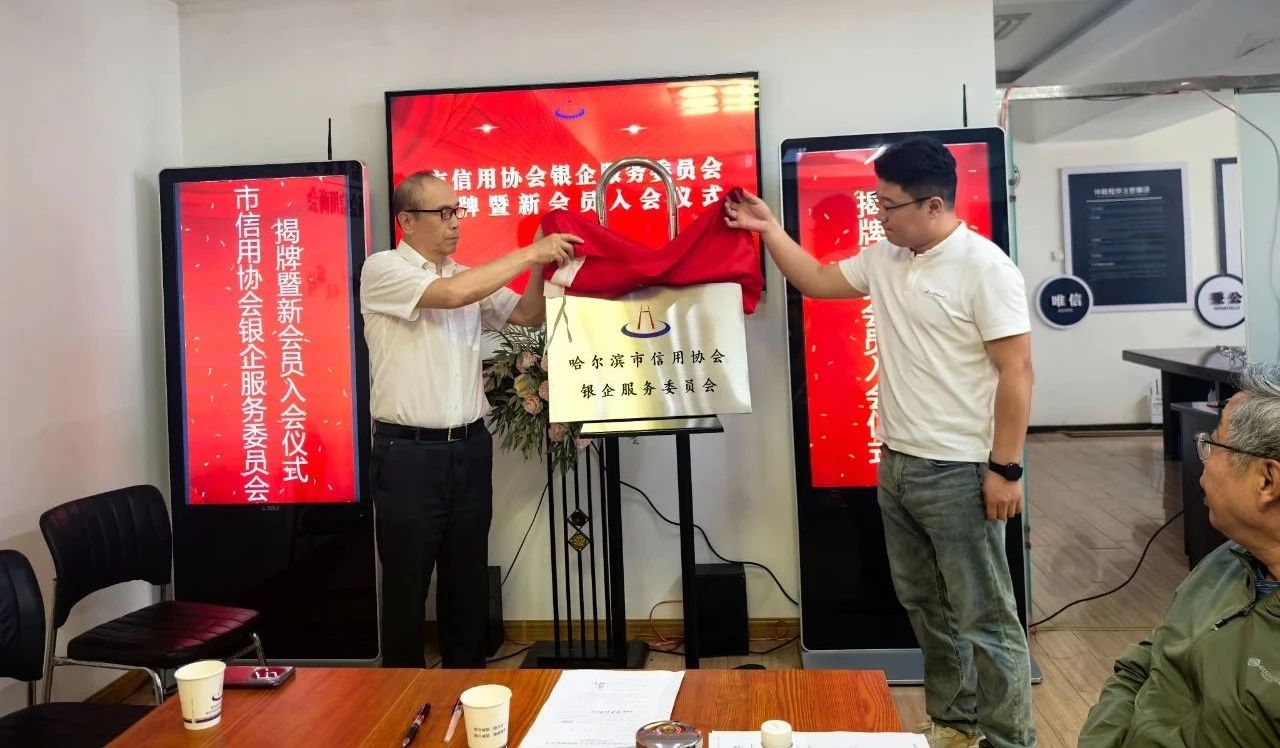 6 月 19 日,信用協會銀企服務委員會揭牌暨新會員入會儀式在協會隆重舉行。此次儀式由協會秘書長王剛主持,常務副會長劉鐵華、副會長韓金龍、張立群、李瑞斌,醫療健康專業委員會秘書長陳國松,省環保廳一級調研員、協會專家劉廣明,哈爾濱金融學院副教授、協會專家陳修山,黨支部書記賀青,特邀會員代表孫健勃以及協會其他部分會員代表共同出席,共同見證這一重要時刻。