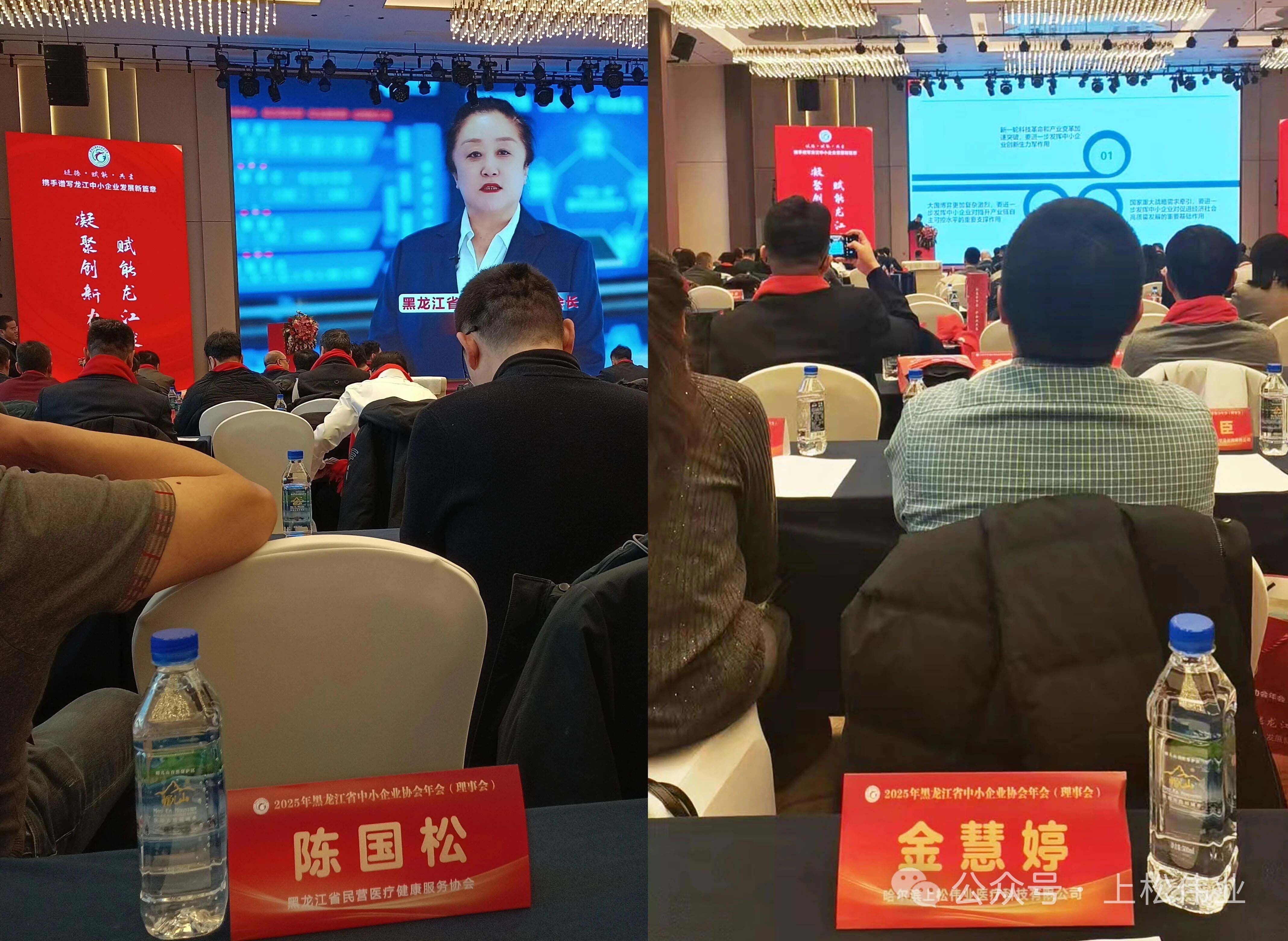 2025年12月17日,黑龍江省中小企業協會2025年年會(理事會)在哈爾濱冠洋世紀大酒店盛大啟幕。? 本次大會以“迎新聚勢 智創輝煌”為核心主題,匯聚省直相關部門領導、行業頂尖專家、標桿企業家及優質服務機構代表,搭建起政策解讀、經驗交流、資源對接的高端平臺。我公司總經理陳國松、辦公室主任金慧婷受邀參會,與各界精英共話發展,為龍江中小企業高質量發展注入強勁動力,助力全省民營經濟在振興征程上闊步前行。