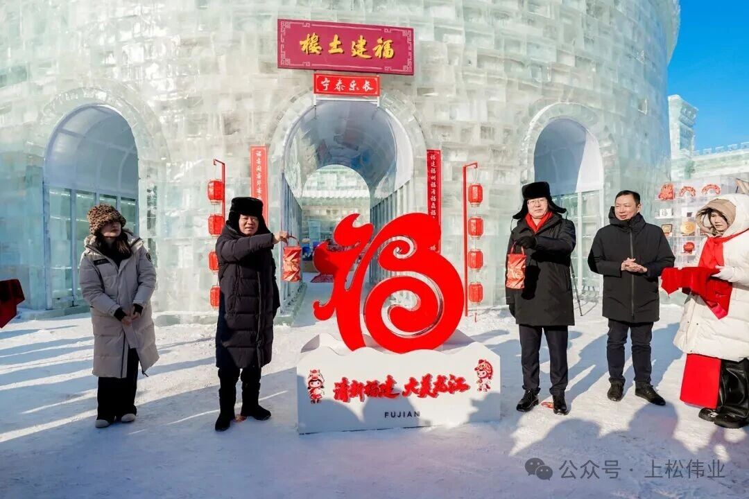 除了主會場的精彩活動之外,系列配套活動也在哈爾濱各處同步上演。在哈爾濱冰雪大世界,以福建世遺土樓為原型打造的冰雕驚艷亮相,晶瑩剔透的冰磚完美復刻了土樓的獨特結構,成為游客爭先打卡的熱門點位。同步啟動的“浪花慕雪白,樂享福年來”福建文旅圖片展,以“浪花”與“雪花”為視覺載體,通過圖片展示、福茶品鑒、文創互動等形式,吸引了大批市民游客駐足參觀。此外,“福氣來上頭”福建文旅創意快閃活動也將走進中央大街等,讓市民游客沉浸式感受福建文化魅力。