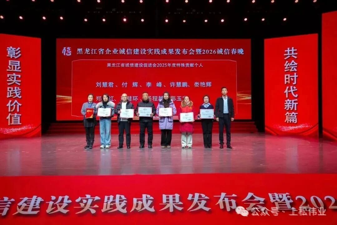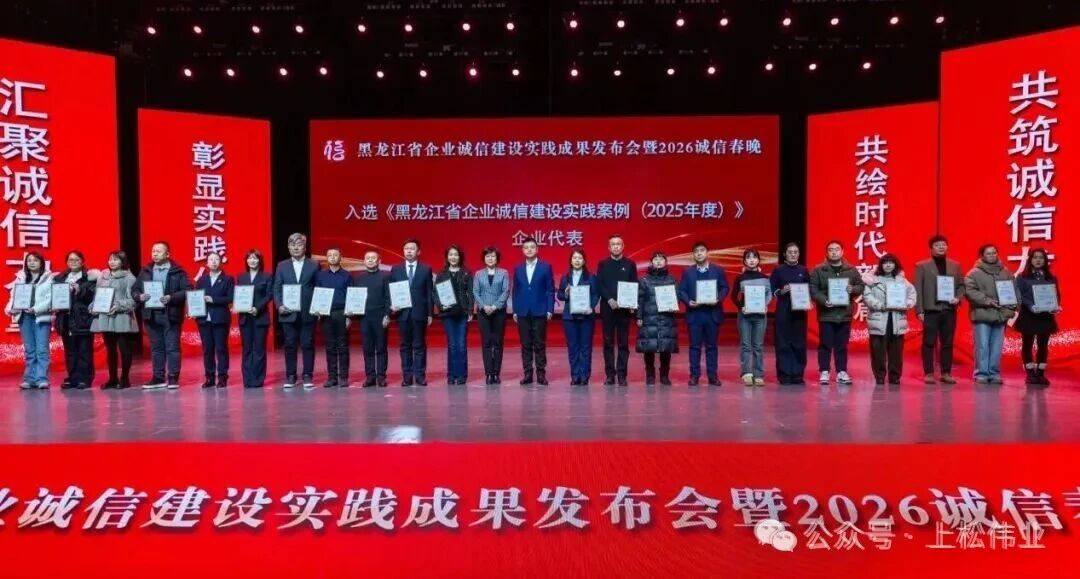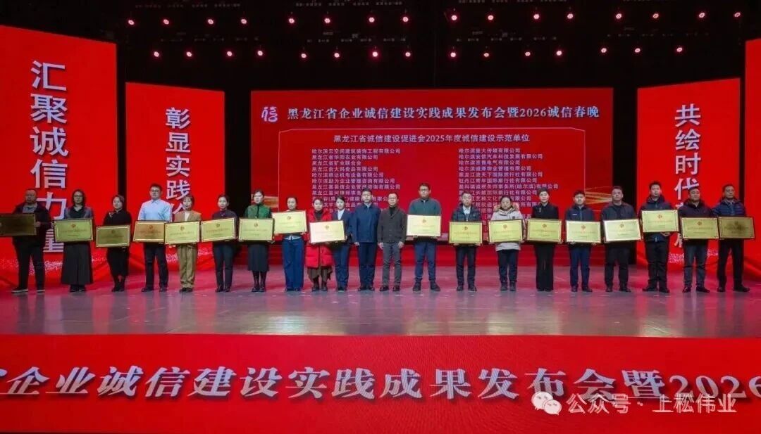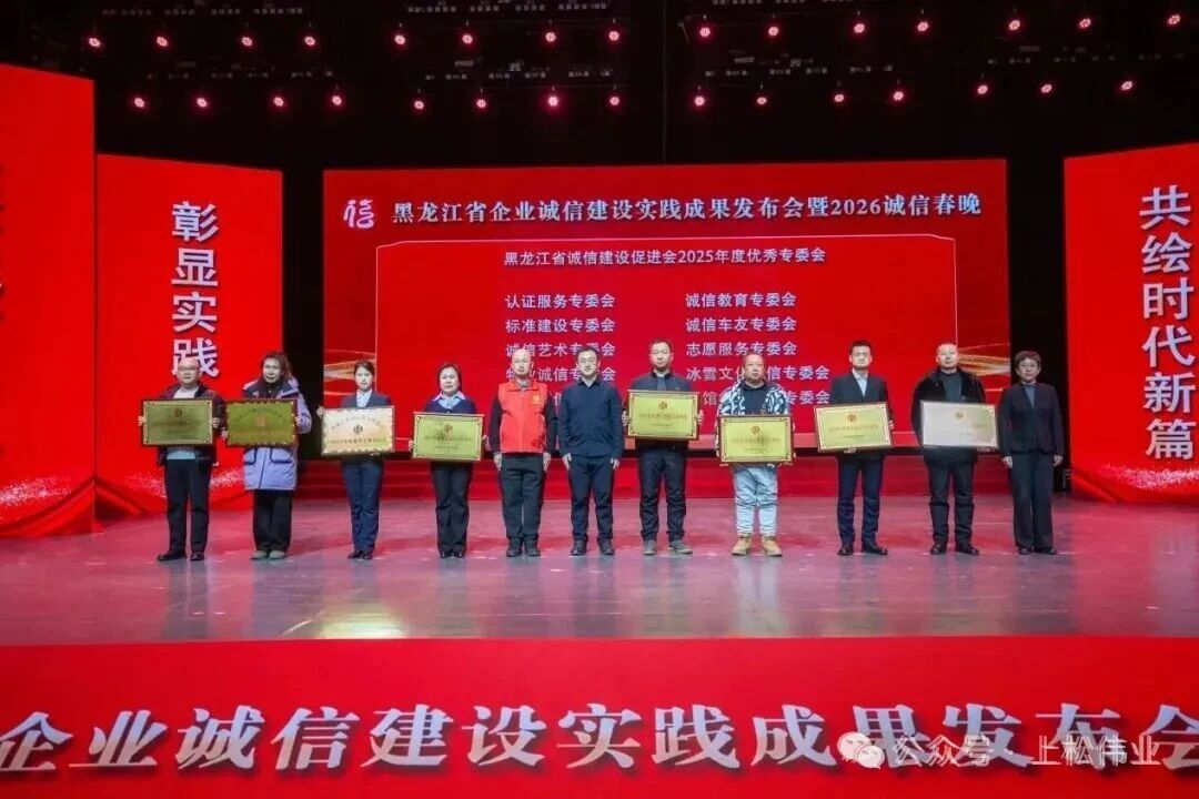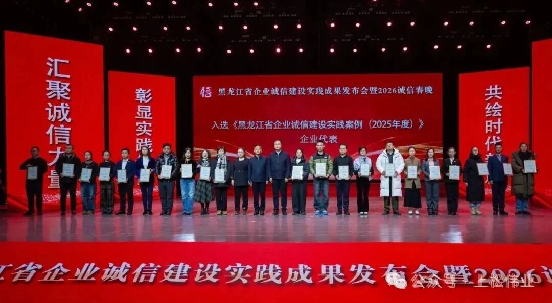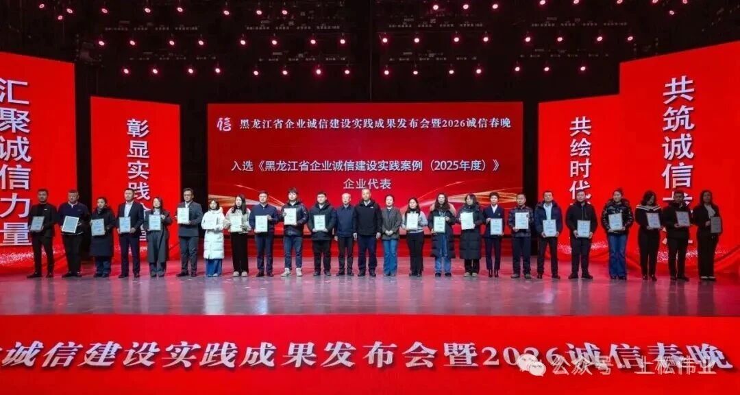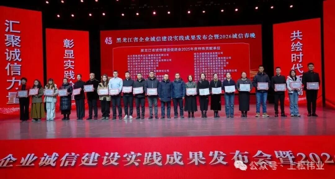 2026年2月3日,黑龍江省誠信建設促進會在哈爾濱廣播電視臺舉辦“黑龍江省企業誠信建設實踐成果發布會暨2026誠信春晚”。本次活動得到省市各級部門重視和支持。出席活動的領導有哈爾濱市政協主席孫珅,省工信廳一級巡視員曹虎,省委統戰部部務委員劉凱,哈爾濱市政協副主席、工商聯主席徐偉,省委宣傳部、省委社會工作部、省直機關工委、省民政廳、省生態環境廳、省商務廳、省文化旅游廳、省市場監督管理局、團省委、省貿促會,哈爾濱市文旅局、哈爾濱市營商局、哈爾濱市工商聯,哈爾濱市道里區政府、哈爾濱新區等部門領導及業務處室負責人;活動邀請了省政府原副秘書長衣恩普,省委政法委原副書記姚大為,省人大法制委原主任石蘭波等相關領導出席,省內部分行業商會協會負責人、會員代表、企業代表近500余人參加活動。全面展示龍江企業誠信建設成果,為優化營商環境注入誠信力量。?我公司總經理陳國松作為企業代表之一,應邀出席本次活動?,與各界嘉賓共同見證龍江企業誠信建設的高光時刻。