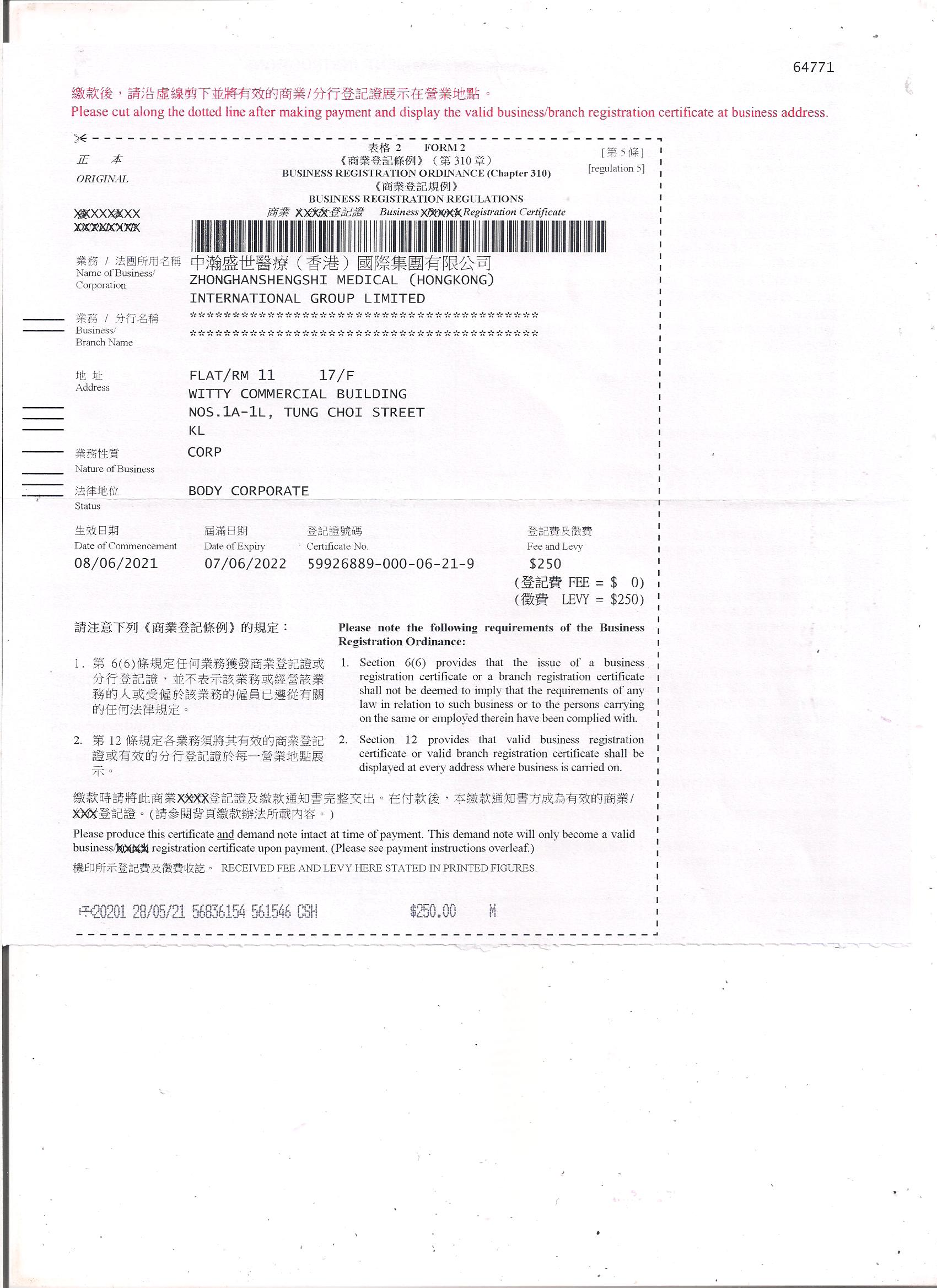 公司注冊證書