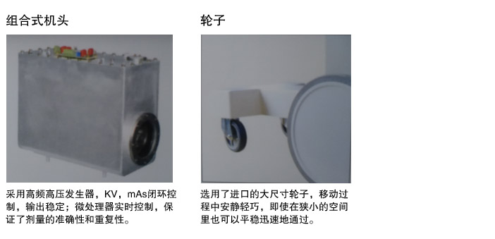 采用高頻高壓發生器,KV,mAs閉環控制,輸出穩定;微處理器實時控制,保證了劑量的準確性和重復性。