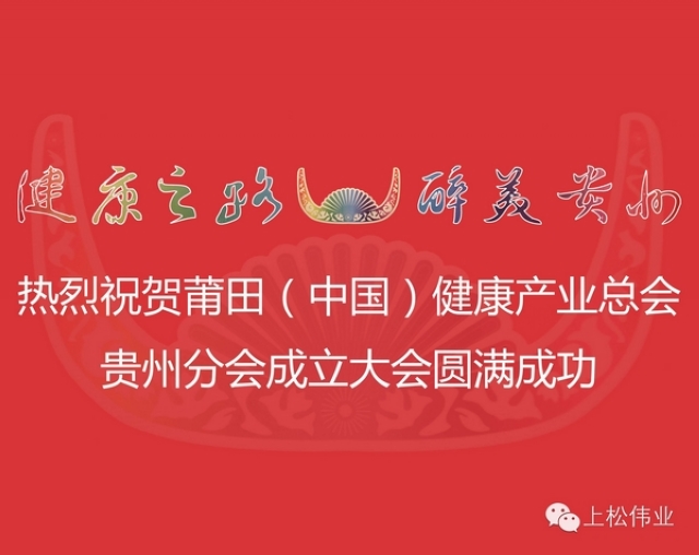 2014年12月18日,莆田(中國)健康產業總會貴州分會(貴州省民營醫院協會)成立大會在貴陽市金陽生態會展中心隆重舉行,來自全國各地眾多政府機關領導、總會、分會領導及貴州健康產業杰出代表共1000余人參加了大會。