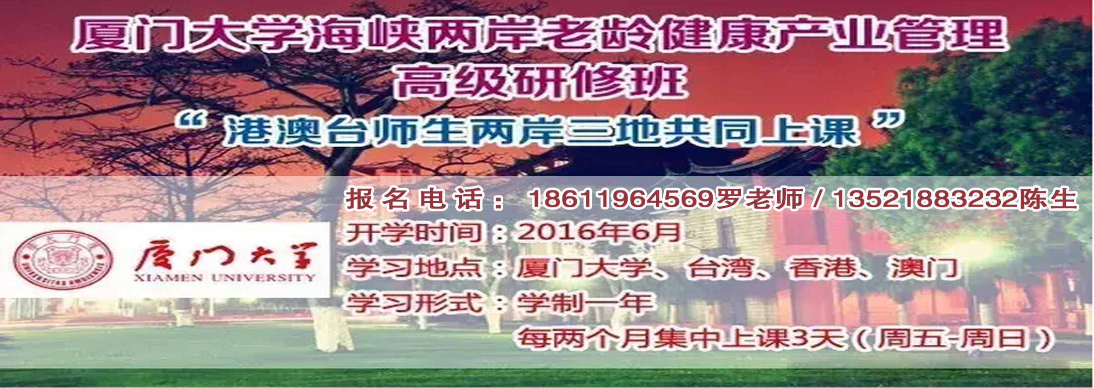 廈門大學針對目前國內老齡健康產業運營管理及服務人才極度缺乏的現狀,特別研發的培訓項目,旨在促進中國老齡產業模式發展,搭建老齡健康產業政策研究、經濟發展、運營管理的高端交流平臺,通過此平臺,將兩岸老齡健康領域最專業的知識,最前沿的信息,最先進的理念和最接地氣的國內外實踐案例,分享給每一位對兩岸老齡健康產業有興趣的人士。解決養老機構面臨的多種經營難題,提升投資及高級管理者項目管理水平,降低在老齡產業的投資風險。