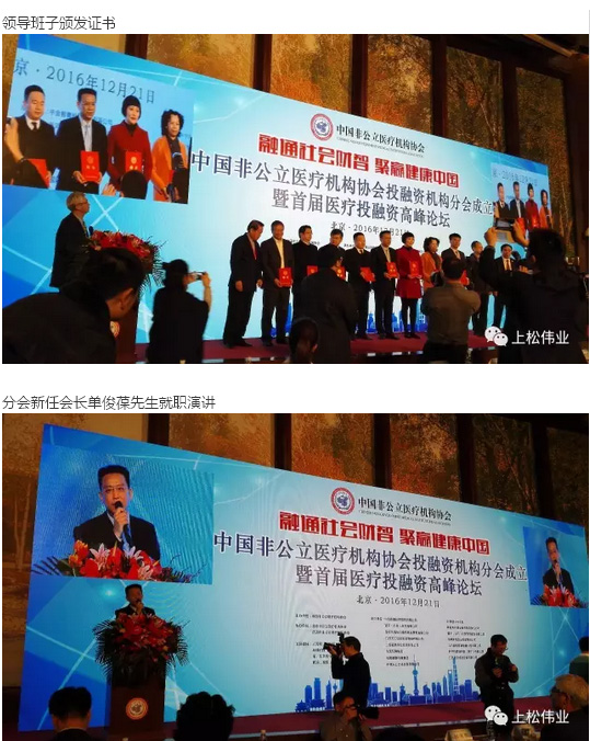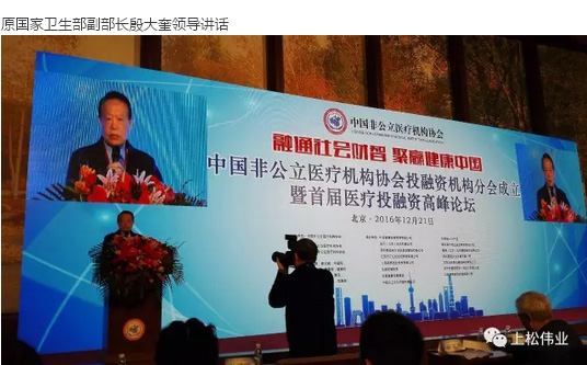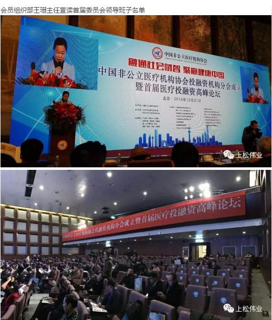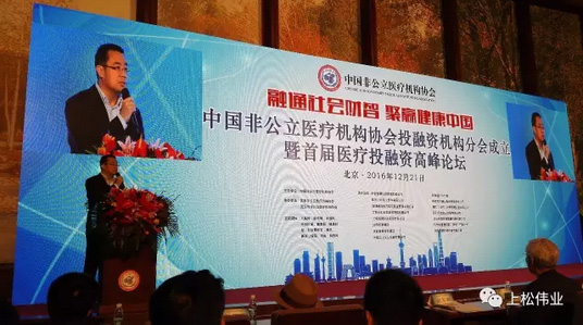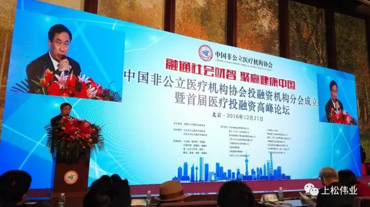為了全面貫徹和落實習近平總書記在全國衛生與健康大會上的重要講話和《“健康中國2030”規劃綱要》精神,切實解決社會資本“找項目難、融資難、投后管理難”的瓶頸問題,更好的將“投、融、管、建”等供應鏈各端融合,立足醫療人才共建,搭建社會資本投融資機構優質、高效、可靠的行業服務平臺,服務于醫療機構和投融資機構,中國非公立醫療機構協會投融資機構分會成立大會暨首屆醫療投融資高峰論壇于2016年12月21日在北京盛大召開。