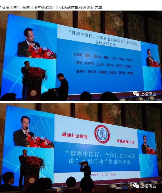 香港中瀚盛世醫療投資集團旗下哈爾濱上松偉業醫療科技有限公司董事長陳國松先生應邀參加了此次盛會,并被聘請為中國非公立醫療機構協會投融資機構分會第一屆委員會委員、“健康中國行,全國社會辦醫”專家巡講團專家講師團首批成員。