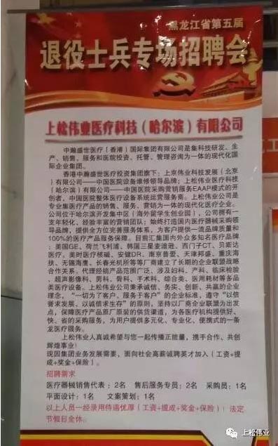 哈爾濱上松偉業醫療科技有限公司受邀參加了此次招聘會,尋找與我們志同道合的人才。得到了良好的反響!