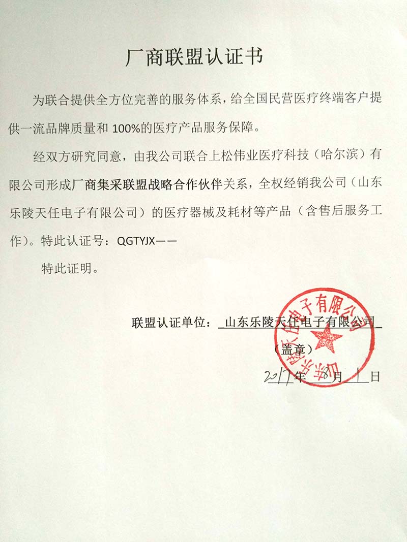 山東樂陵天任電子有限公司授權(quán)