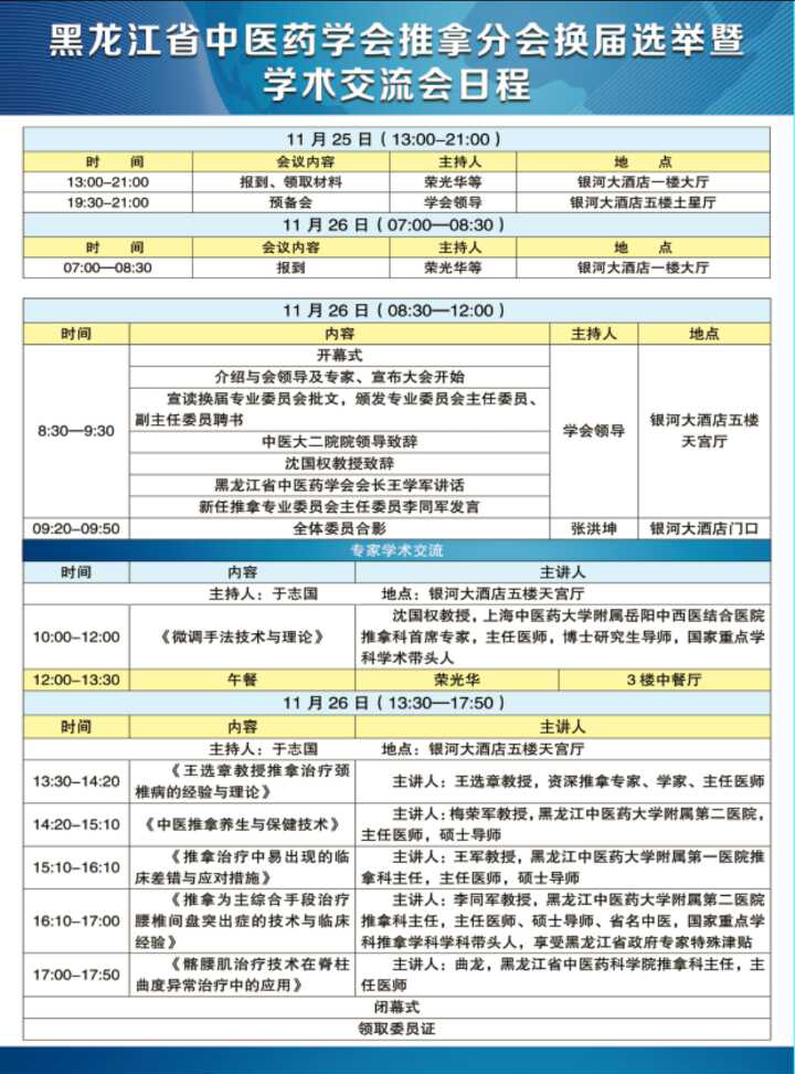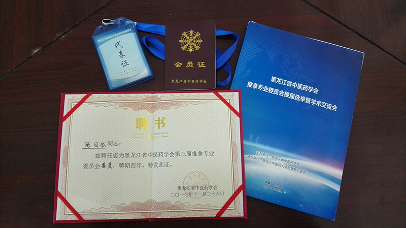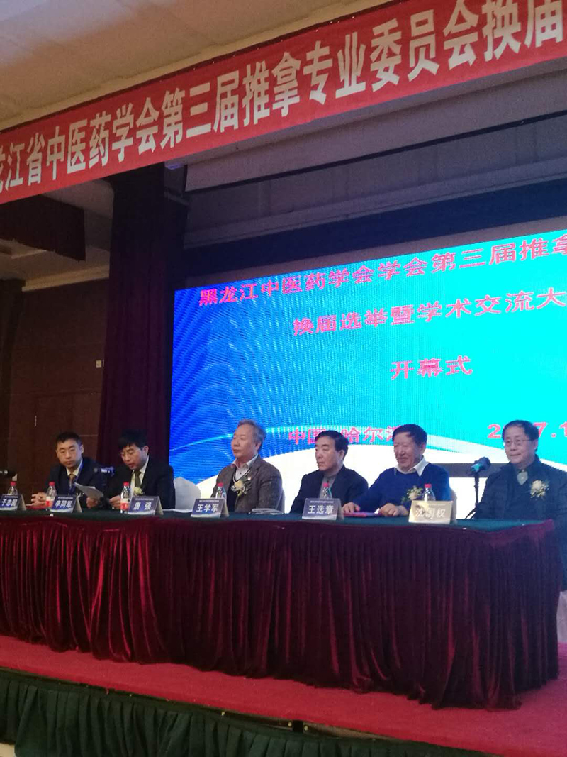 黑龍江省中醫(yī)藥學(xué)會(huì)第三屆推拿專業(yè)委員會(huì)換屆大會(huì)暨學(xué)術(shù)交流會(huì)于2017年11月26日在哈爾濱市銀河大酒店召開。我公司董事長(zhǎng)陳國(guó)松當(dāng)選為第三屆推拿專業(yè)委員會(huì)委員。