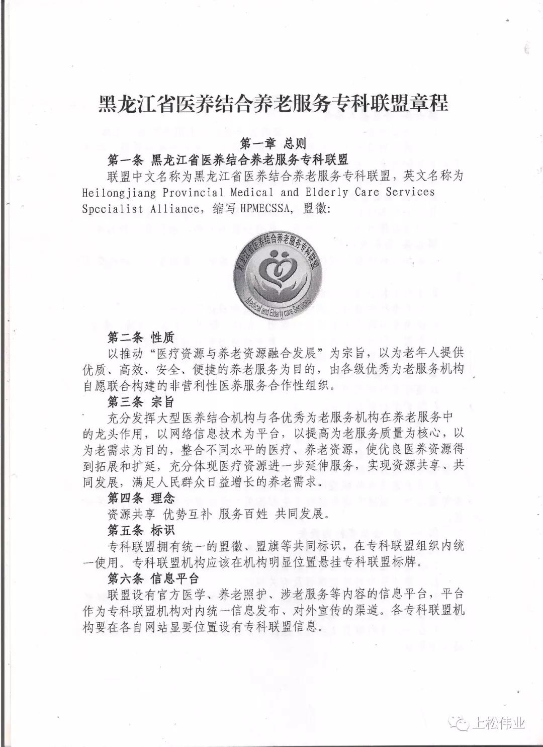 2017年12月28日,“黑龍江省醫養結合養老服務專科聯盟”成立大會暨哈爾濱市醫學會醫養結合專業委員會學術交流會在黑龍江省航務管理局隆重召開。香港中瀚盛世醫療投資集團上松偉業醫療正式成為黑龍江省醫養結合養老服務專科聯盟單位,現場共有119家為老服務機構加入了該聯盟。