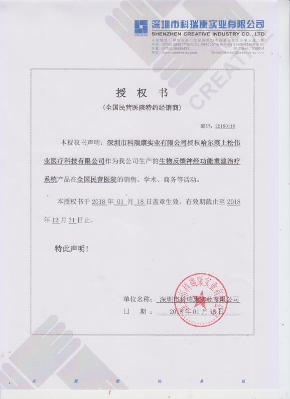 深圳市科瑞康實業有限公司授權
