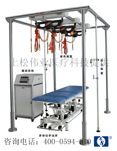 S-E-T懸吊系統是主體部分,振動系統、多體位治療床配合懸吊系統協同工作,從而達到預防、治療肌肉與骨骼系統疾病的目的。