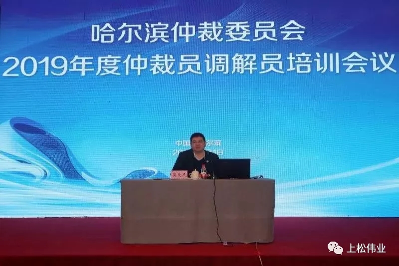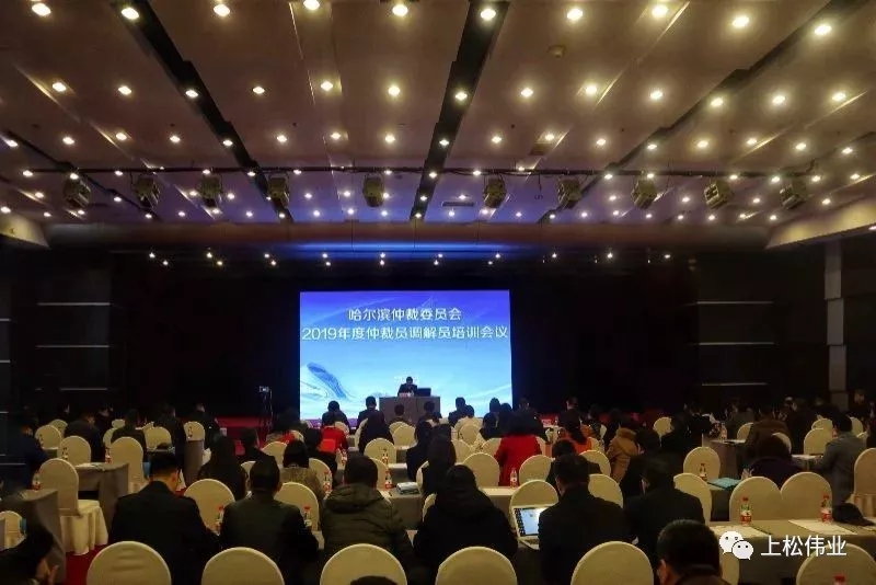 2019年4月1日,哈爾濱仲裁委員會在哈爾濱市華旗飯店國際會議中心501會議室召開2019年度仲裁員及調解員培訓會議。本次會議由哈爾濱仲裁委常務副主任兼秘書長吳愛民主持,哈仲第五屆150余名仲裁員,我公司董事長陳國松及50余名調解員參加了本次會議。