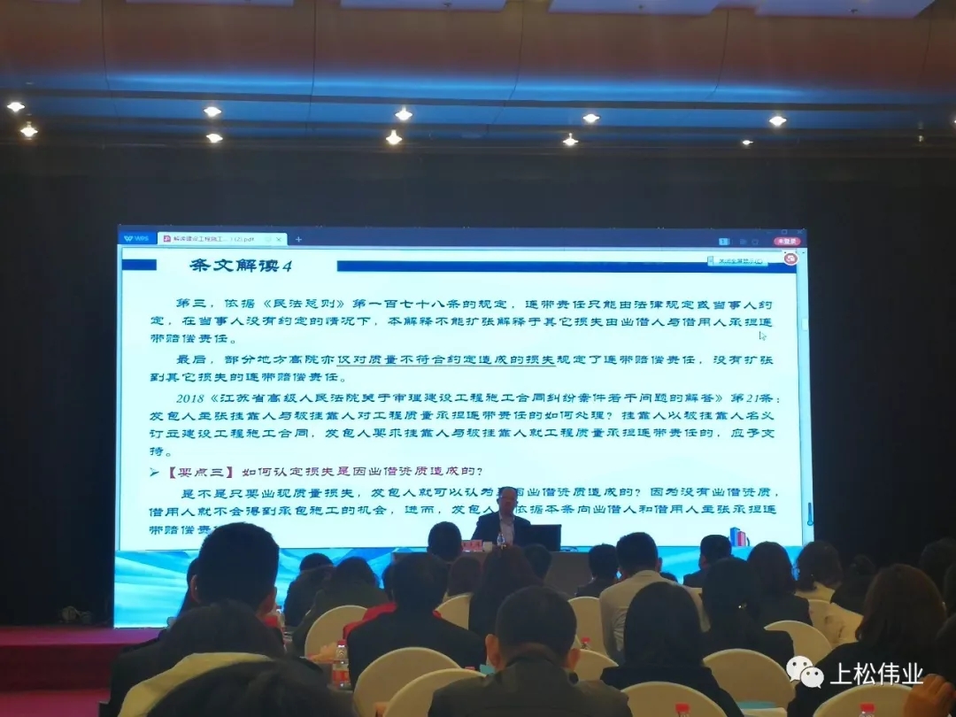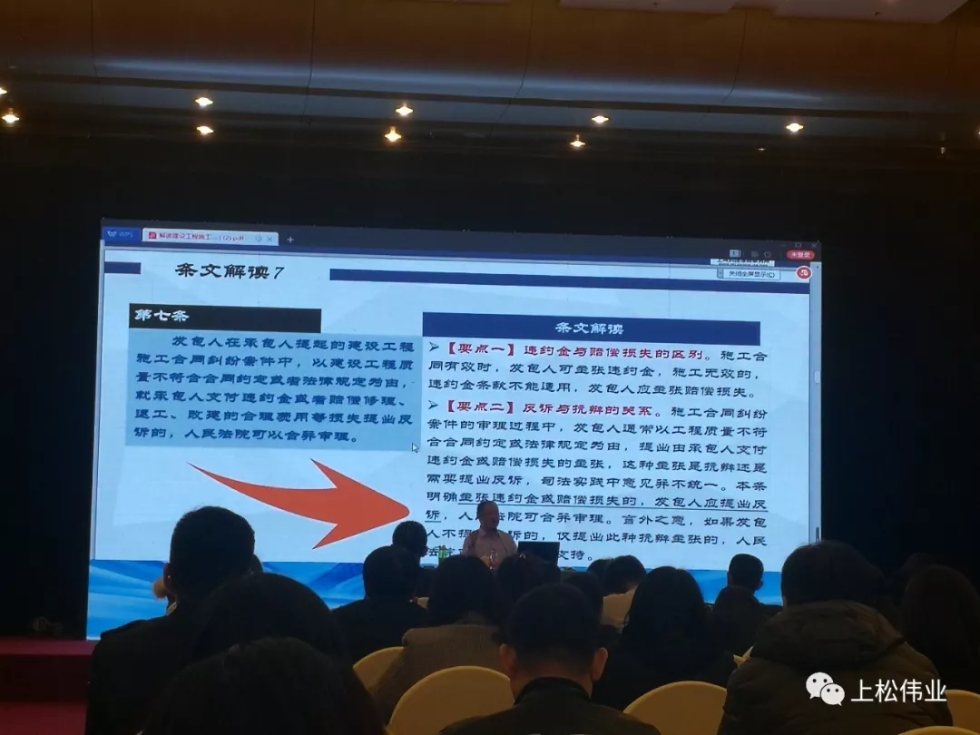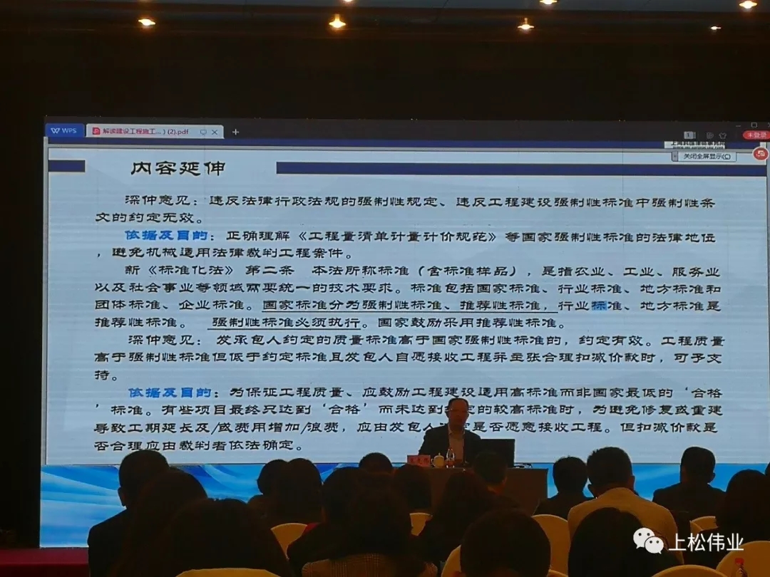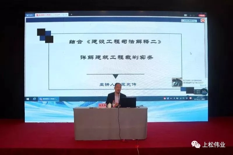 其后,上海科匯律師事務所執行主任、中國建設工程造價管理協會專家委員會委員、中國行為法學會法制服務中心副主任兼法治服務(建筑工程)中心主任、深圳仲裁委員會建設工程國際仲裁院院長王先偉作題為《結合<建設工程司法解釋二>詳解建筑工程裁判實務》的專題講座。