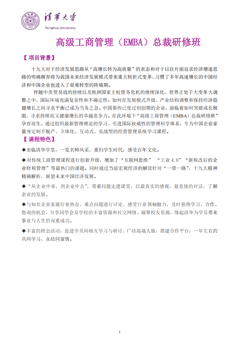 清華大學高級工商管理(EMBA)總裁研修班