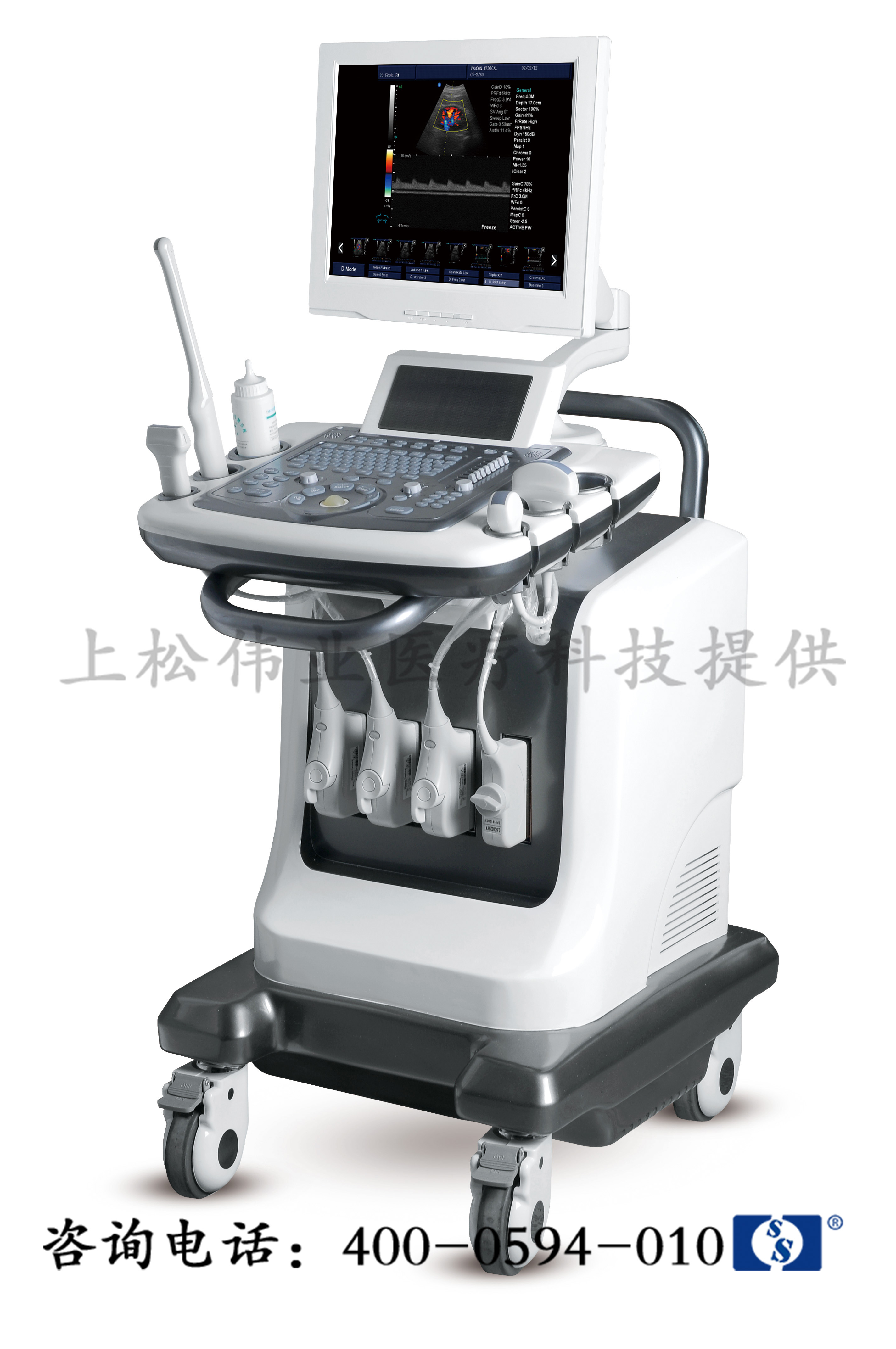8) 心臟探頭:工作頻率:2.0-10.0MHz