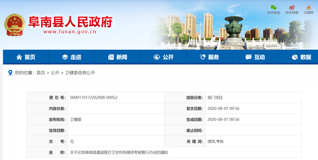 為建立健全多勞多得、優績優酬的績效分配制度,打破吃“大鍋飯”的局面,調動醫務人員的積極性,近日,安徽省阜南縣印發《關于基層醫療衛生機構績效考核暫行辦法的通知》(以下簡稱《通知》)。