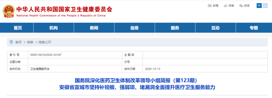 國家衛(wèi)健委公布《國務院深化醫(yī)藥衛(wèi)生體制改革領導小組簡報(第123期)》,介紹了安徽省宣城市的基層醫(yī)改經驗。