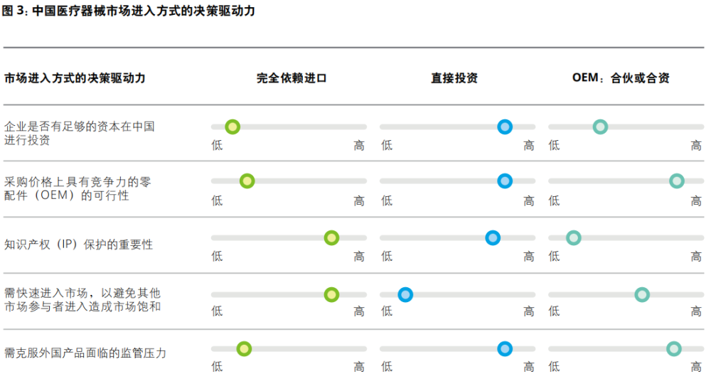 另外,企業可以考慮與本地原始設備制造 商(OEM)合作。通過本地的OEM合作伙 伴,企業可以滿足本地的生產要求,從而減少進入市場所面臨的監管壁壘。與直接投資相比,與本地OEM合作所需的資本投入較少,并有助于更快地進入市場。但是,此種方式會導致面臨更大的IP/技術泄露風險。外國企業亦需努力尋找可以 信賴的合格本地OEM合作伙伴,并持續監控產品質量。因此,這一方式更適合較 為通用的基礎產品或在制造過程中相關IP可得到妥善保護的產品。無論采用哪種市場進入模式,外國企業 都將可能需要依靠分銷商來促進對醫院 和診所的銷售。04