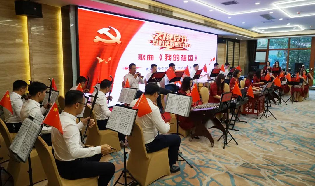黑龍江省福建商會東南樂團獻上紅歌演奏——《萬里長征》、《我的祖國》、《紅星照我去戰斗》,詠唱龍江閩商從八閩大地來到白山黑水間拼搏的情懷,表達對黨深深的感恩和祝福之情。