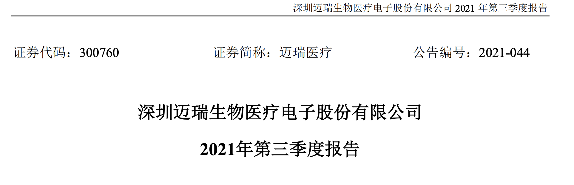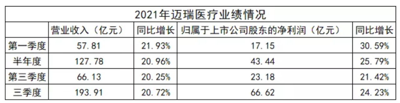 10月20日,邁瑞醫療發布《2021年第三季度報告》。